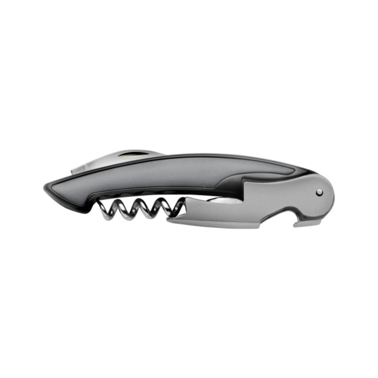 Konobarski nož od nerđajućeg čelika i plastike. Uključuje: dva otvarača, rezač folije i vadičep.