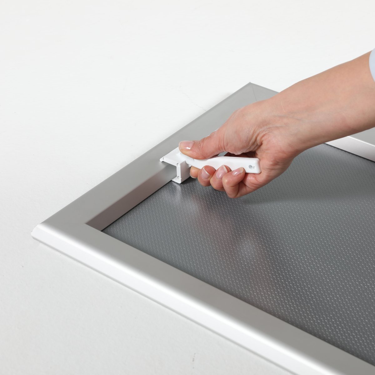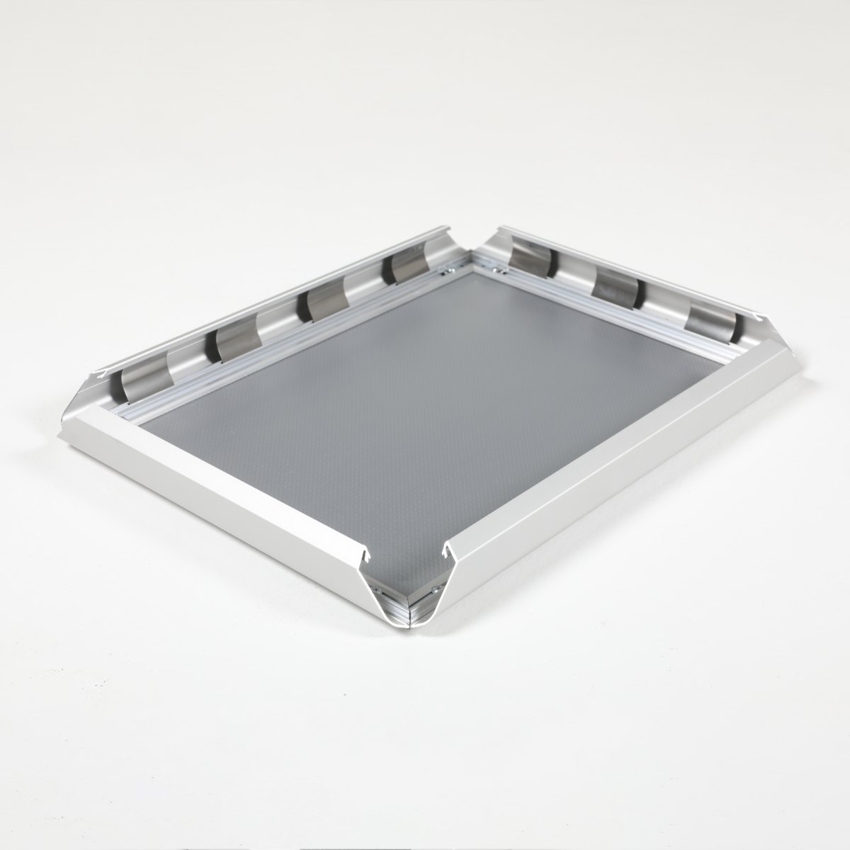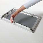 Ovaj ram ima četiri ćoška sečena pod uglom od 45 stepeni, poznato i kao gerovane ivice. Da biste ubacili poster, jednostavno otvorite klik ram, ubacite svoj poster i zatvorite. Poznati nazivi su Klik ram, metalni ram, okvir za psotere, metalni okvir grafiku, okvir za poster, držač znakova, držač postera, okvir klik klak.