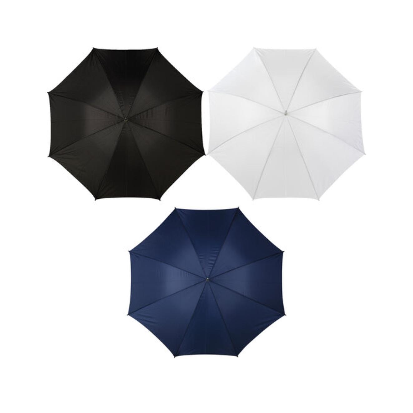 Poliester (190T) kišobran za golf sa osam panela. Metalni okvir i drvena drška.