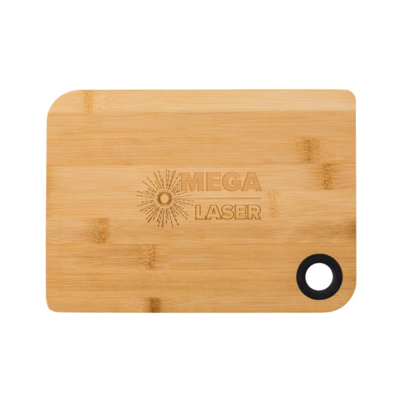 Daska za sečenje od bambusa. Rupa za palac je obložena silikonskim prstenom.